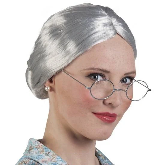 Oma brilletje met ronde ‘glazen’, past uitstekend bij de grijze oma pruik met knotje