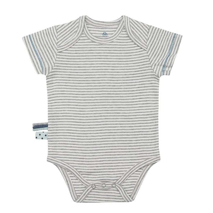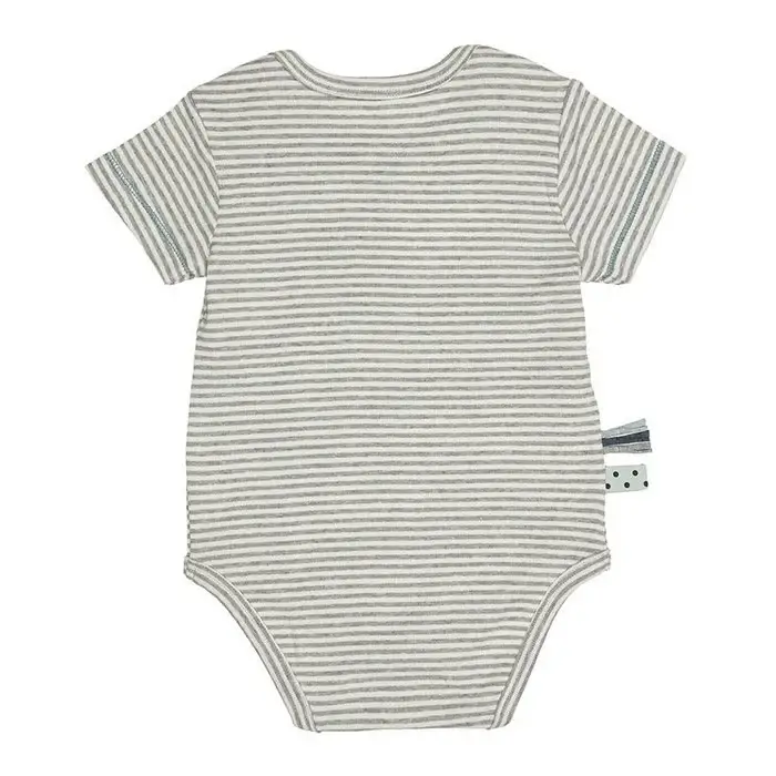 De body met korte mouwen in gestreept grijs melange van OrganicEra biedt de baby een comfortabele pasvorm, die wordt bereikt door de aaibare stof, die is gemaakt van hoogwaardig biologisch ribkatoen. Bovendien is de stof zeer elastisch, zodat het kind zich helemaal comfortabel voelt en gemakkelijk kan bewegen in het kledingstuk. Het lijfje kan gemakkelijk over het hoofdje getrokken worden via de schuifkraag. -met overslag halslijn -met muizentandjes bij de halslijn.