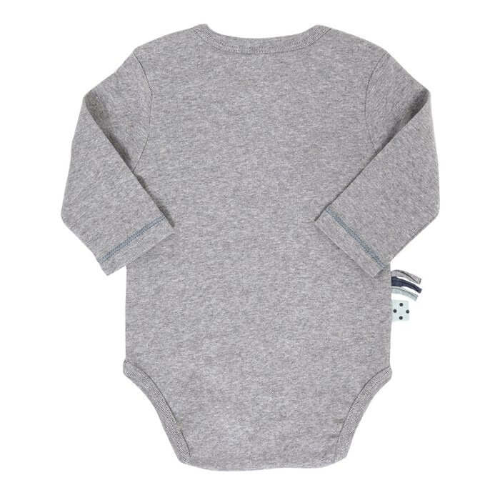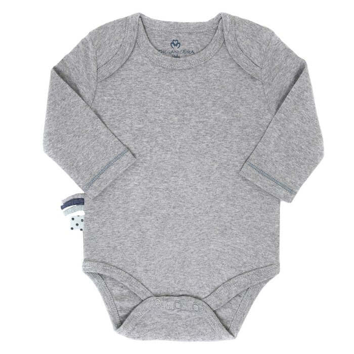 De body met lange mouwen in grijs gemêleerd van OrganicEra biedt het kroost een comfortabele pasvorm, die wordt bereikt door de aaibare ribstof, die is gemaakt van hoogwaardig biologisch katoen. Bovendien is de stof zeer elastisch, zodat het kind zich helemaal op zijn gemak voelt en gemakkelijk kan bewegen in het kledingstuk. Het lijfje kan gemakkelijk over het hoofd worden getrokken via de oprolbare halslijn.