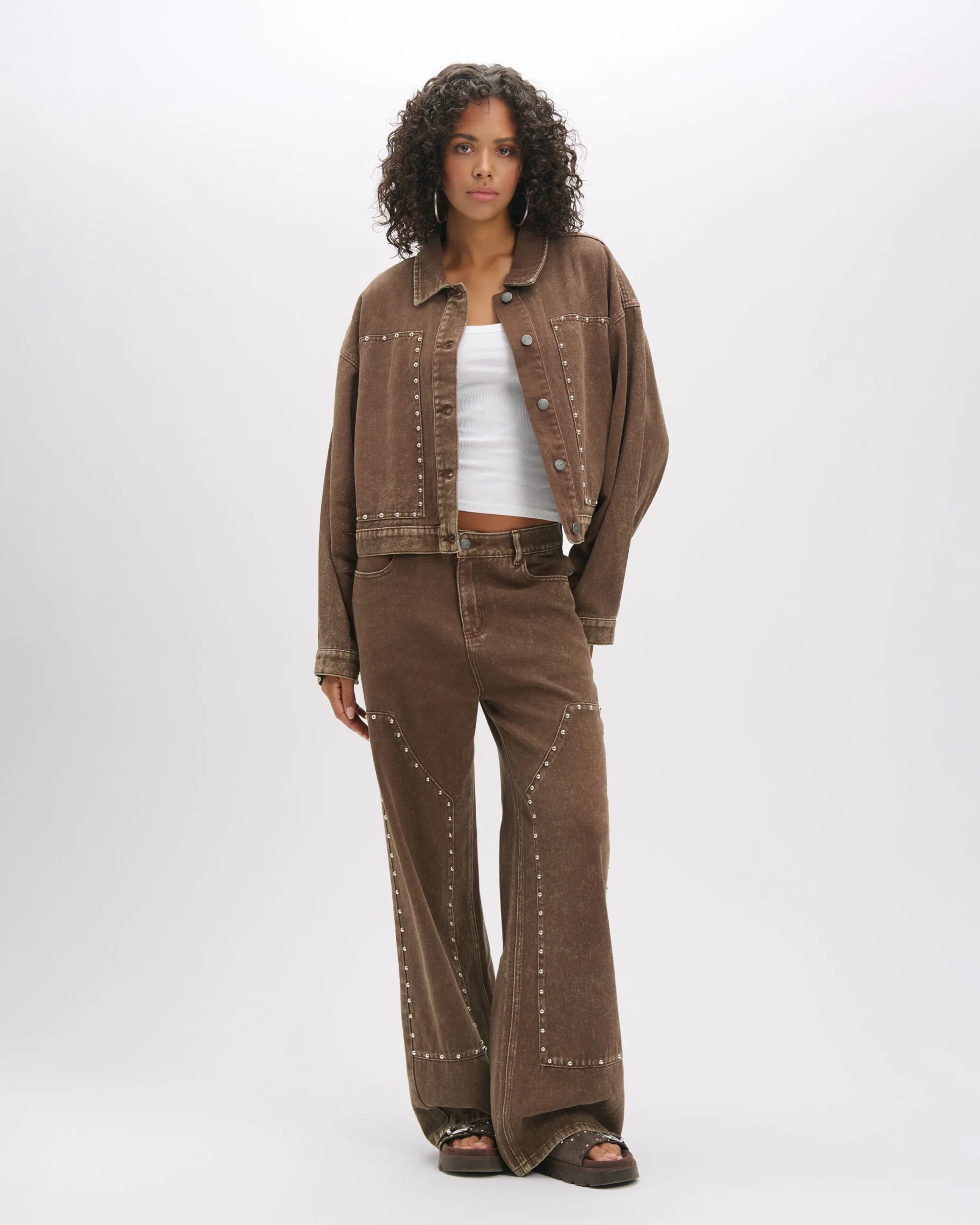 Oversized Studded Honni Spijkerjas, Brown