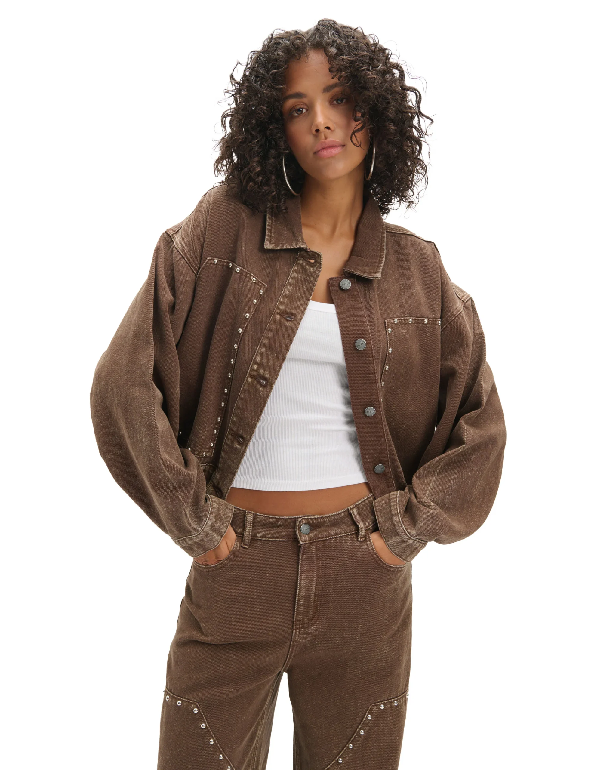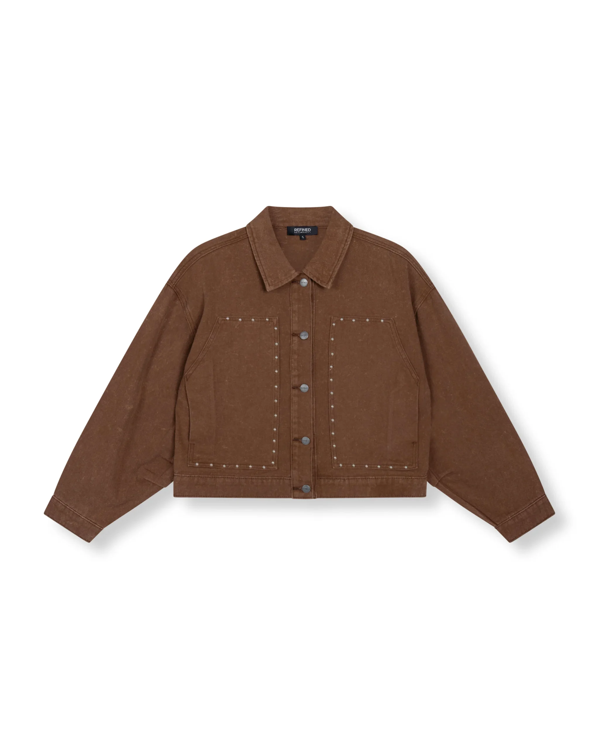 Ervaar ultiem comfort en stijl met de Refined Department Oversized Studded Honni Spijkerjas. Deze eigentijdse jas is perfect voor de modebewuste vrouw die houdt van een nonchalante en trendy uitstraling. De spijkerjas in diepe bruine tint is gedetailleerd afgewerkt met studs, voor een subtiele rebelse touch.