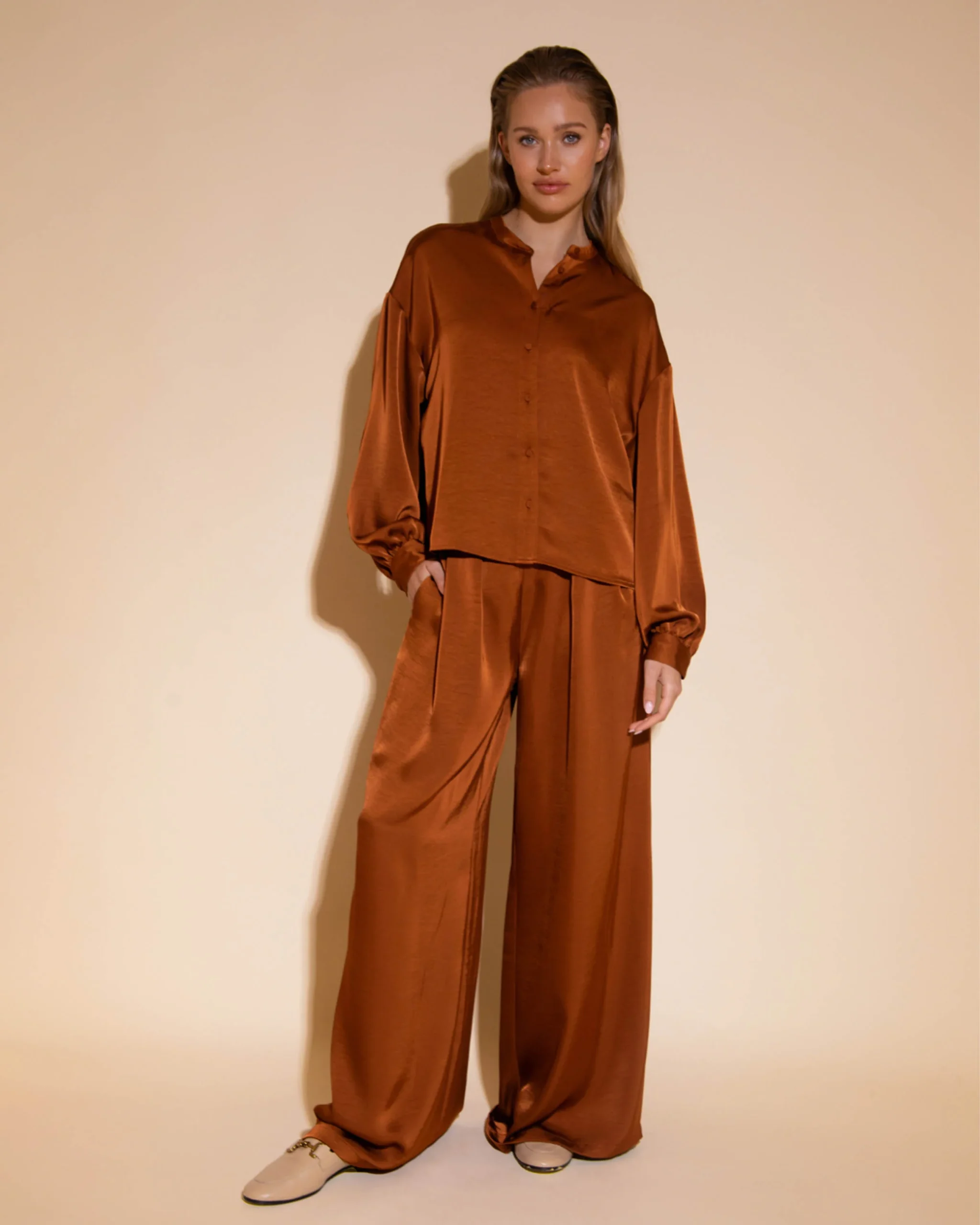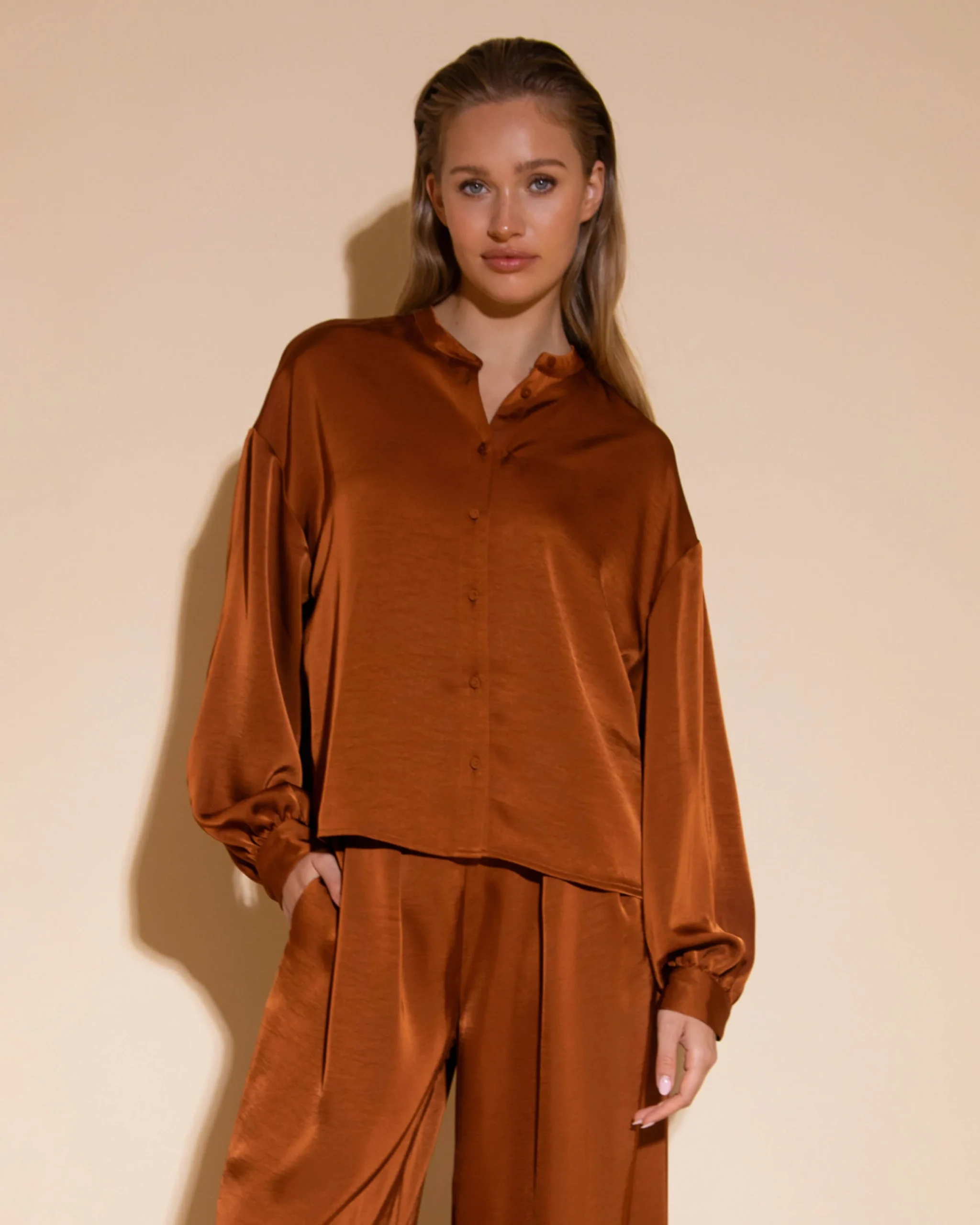 Laat jouw stijl stralen met de Amaya Amsterdam Pina Pantalon. Deze elegante pantalon in een warme bruine tint biedt een subtiele flair aan elke outfit. De vloeiende pasvorm zorgt voor zowel comfort als een chique uitstraling, perfect voor elke gelegenheid waar je indruk wilt maken.
