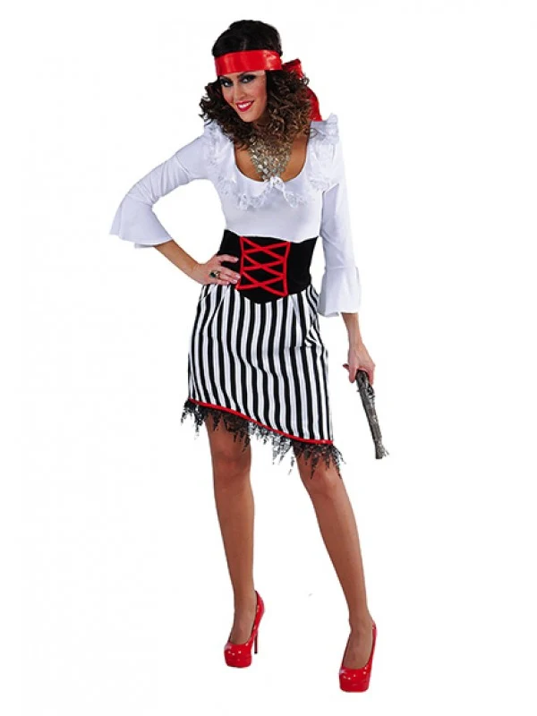 Piratenjurk getreepte rok met kant en wit bovenstuk, zeer fraai en elegant model, AANBIEDING OP=OP