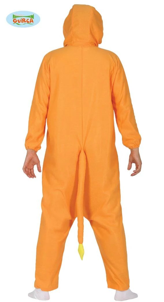 Pokemon Charmander Draak Kostuum is een makkelijk te dragen onesie met brandende staart en capuchon, het kostuum is one size, maat M/L