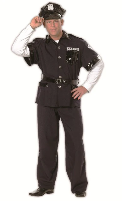 Politiepak heer met pet, het volledige kostuum bestaat uit de politiejas, broek, politiepet en riem, aanbieding OP=OP