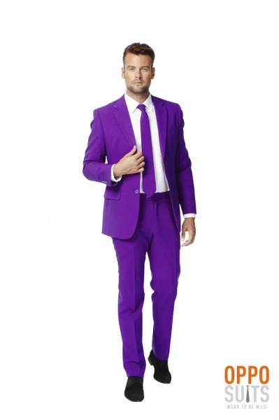 Dit prachtige Purple Prince kostuum in opvallende paarse kleur bestaat uit een pantalon, colbert en stropdas. Een prachtige blikvanger op elk feest