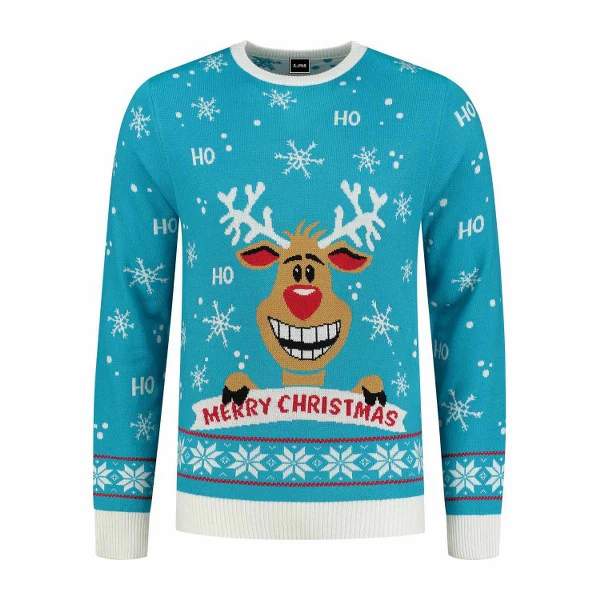 Rudolf Kerst Trui Turquoise is een super originele Kersttrui met schitterend design