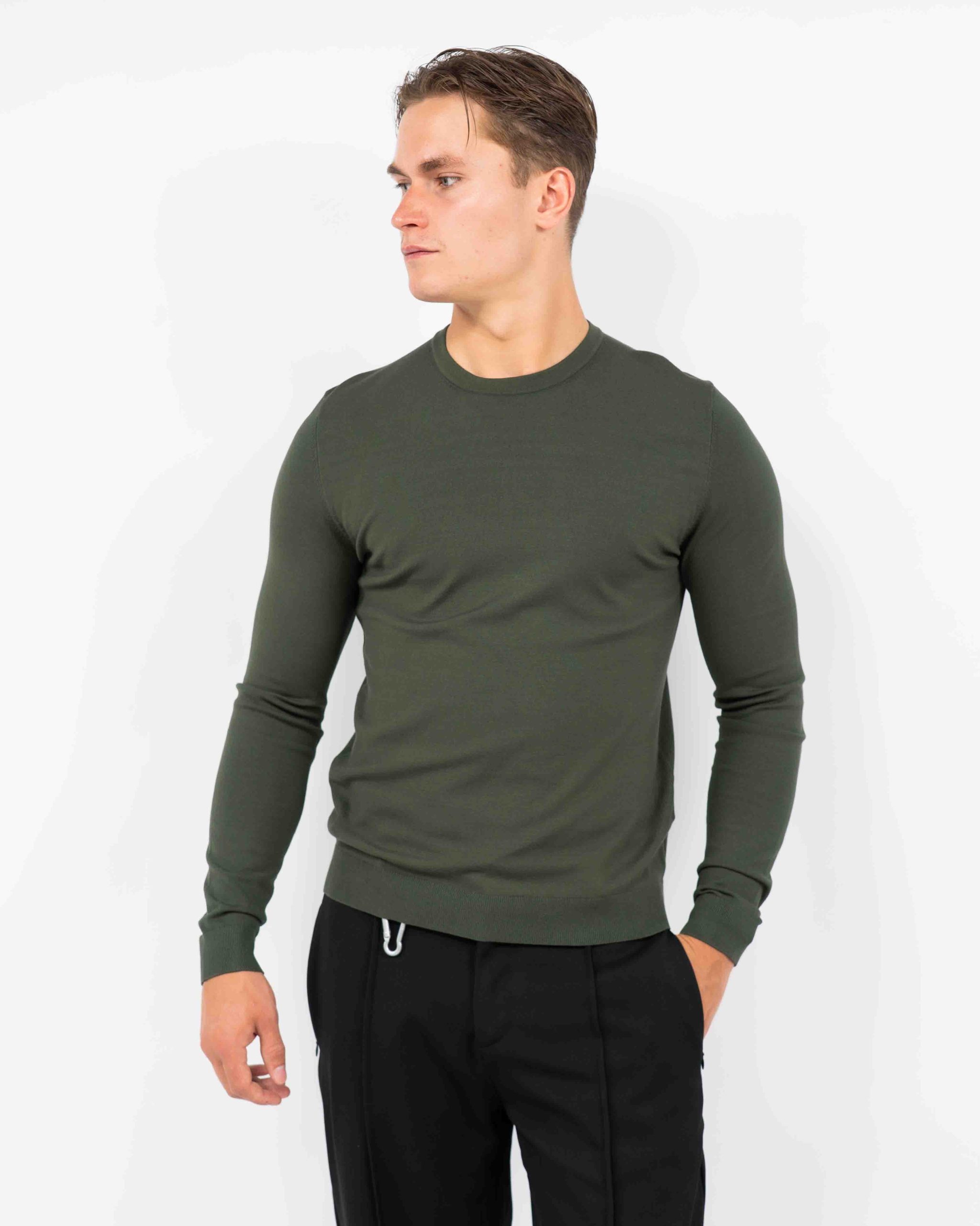De knitwear met fijn gebreid patroon zorgt voor een tijdloze uitstraling, terwijl de ingetogen groene tint moeiteloos gecombineerd kan worden met diverse outfits. Een essentiële aanvulling voor hem die waarde hecht aan zowel elegantie als comfort in zijn garderobe.