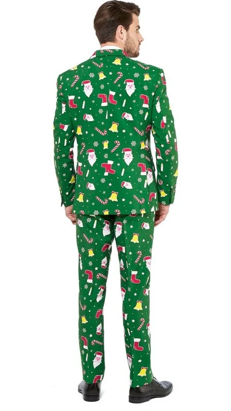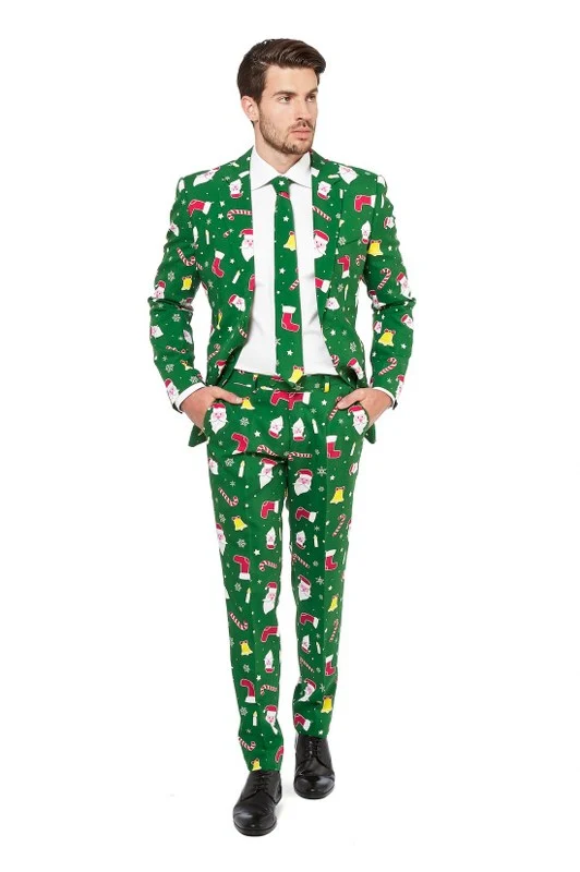 Santa Boss Opposuit voor de echte Kerstbaas, wil je echt wat anders met Kerst en er helemaal op en top uit zien in dit nette Kerst kostuum met grappige Kerst-afbeeldingen, dan is dit kostuum iets voor jou. Het pak bestaat uit een broek met zakken, een gevoerd jasje en een bijpassende stropdas, een super orgineel Kerstkostuum