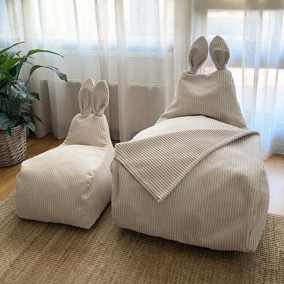 De BUNNIES worden geleverd met een binnenzak en afneembare, wasbare hoezen. De binnenzak is gevuld met zachte bonen en kan gemakkelijk worden bijgevuld als dat nodig is.