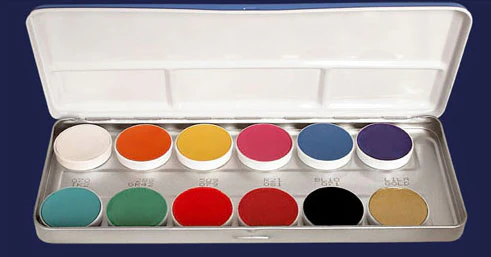 Schhminkpalet Kryolan 12 kleuren, Aquacolor Wet Make Up 12 kleuren, professionele schmink van Kryolan