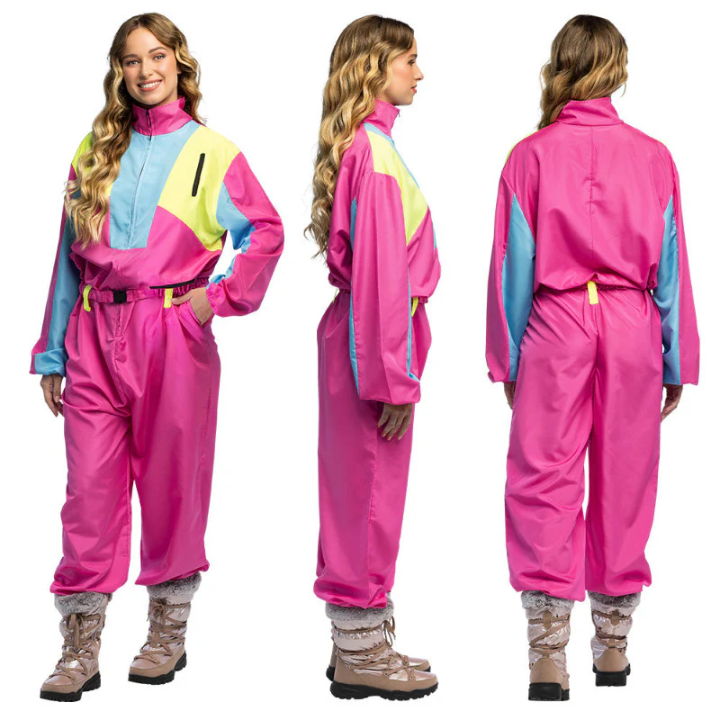 Steel de show op de piste én tijdens de après-ski met het Skipak Snow Glow Babe. Dit opvallende carnavals- en apres-skipak is uitgevoerd in fel neon roze en afgewerkt met neon geel en lichtblauwe accenten. Onder UV blacklight komt dit pak helemaal tot leven – perfect voor feestjes, après-ski avonden en carnaval. Dit retro geïnspireerde apres-skipak combineert een speelse jaren 80 vibe met een moderne, vrouwelijke uitstraling