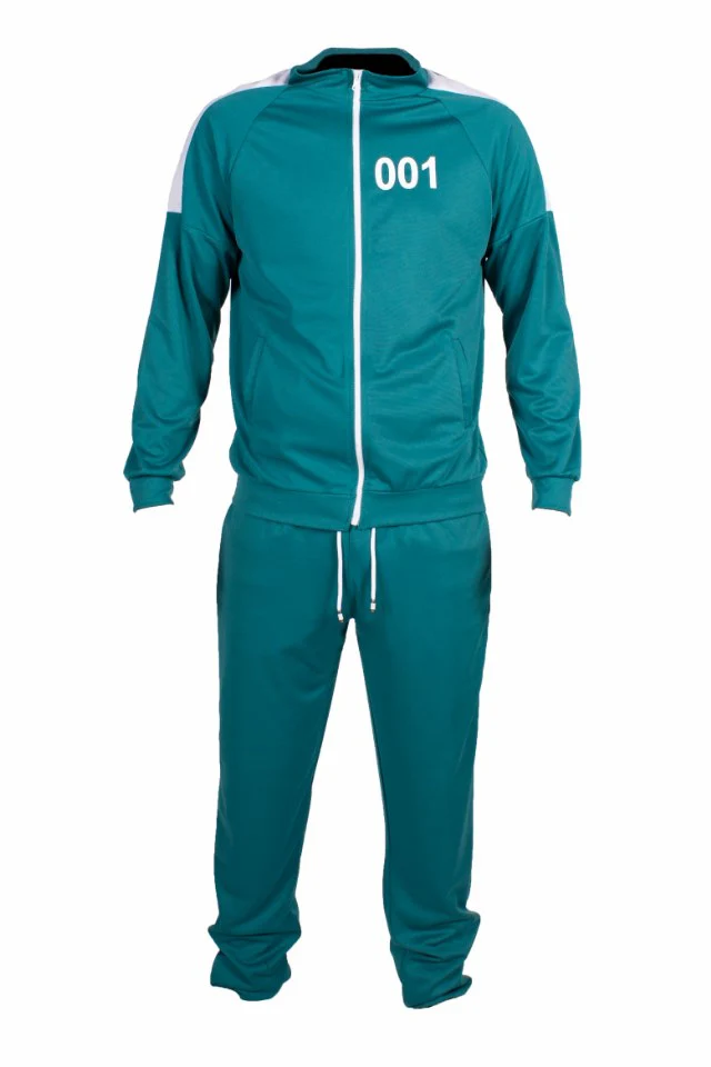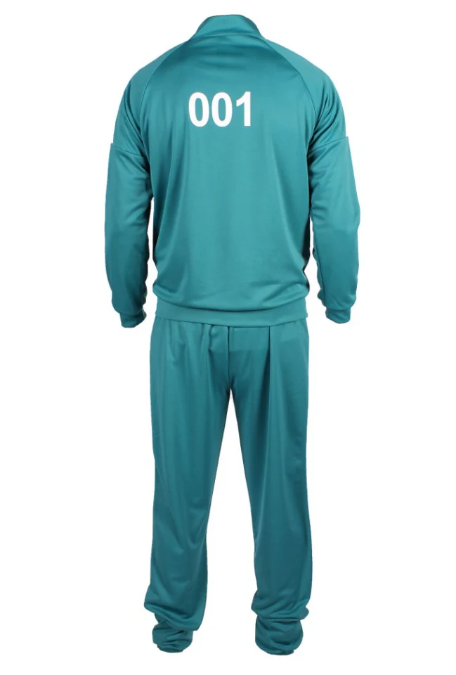 Squid Game Trainingspak Volwassenen Luxe met nummer 001. Deelnemer 001 is in de serie een belangrijke speler. Hij doet wel om een heel bijzondere reden mee met het spel. Het is ook meteen de oudste speler.