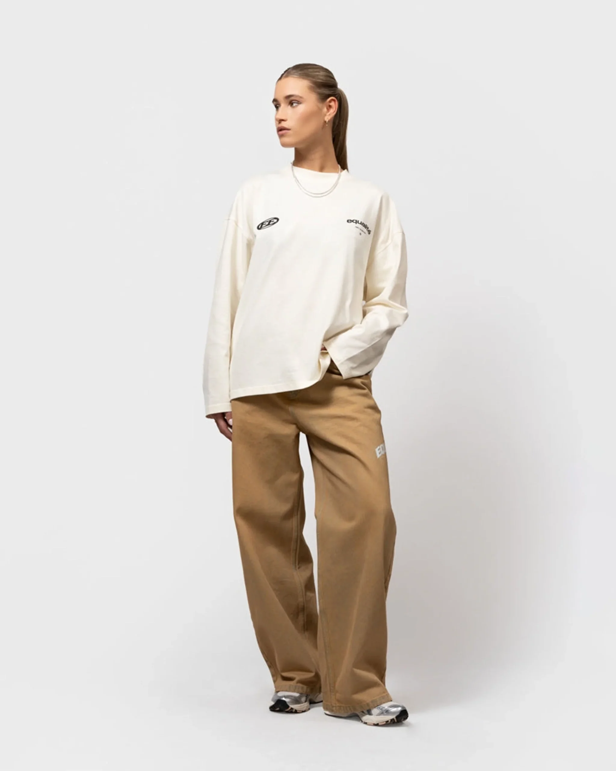 De _Stay Equal Longsleeve T-Shirt_ is een statement op zichzelf. Deze _T-shirt lange mouw_ is een stoere toevoeging aan jouw collectie. Met zijn zachte off-white tint past het perfect in elke wintergarderobe, ideaal voor degenen die kwaliteit en stijl in één willen. Combineer het met je favoriete jeans of sweatpants voor een casual, maar doordachte look. Dit shirt is een eerbetoon aan de streetwear waar _Equalite_ bekend om staat.