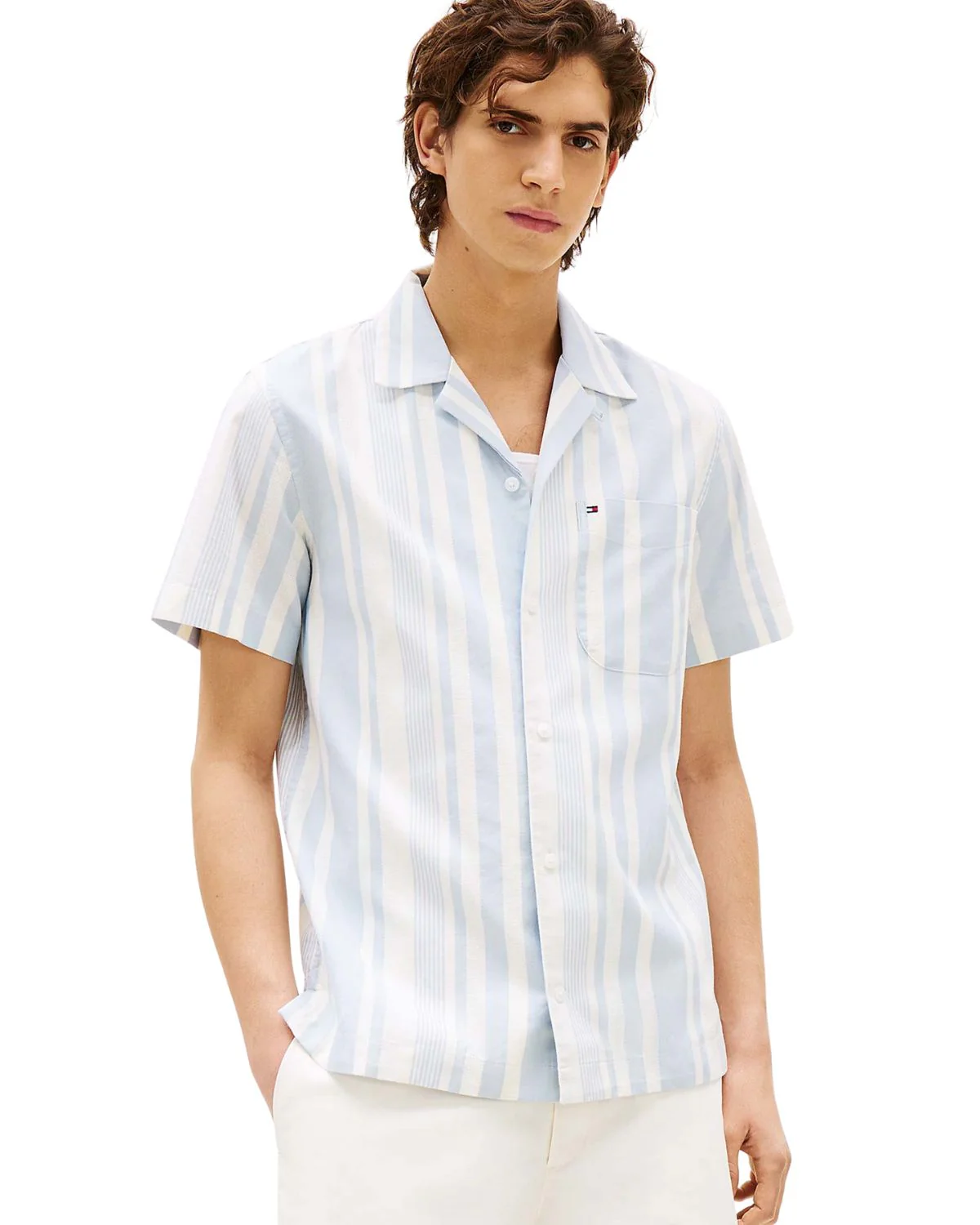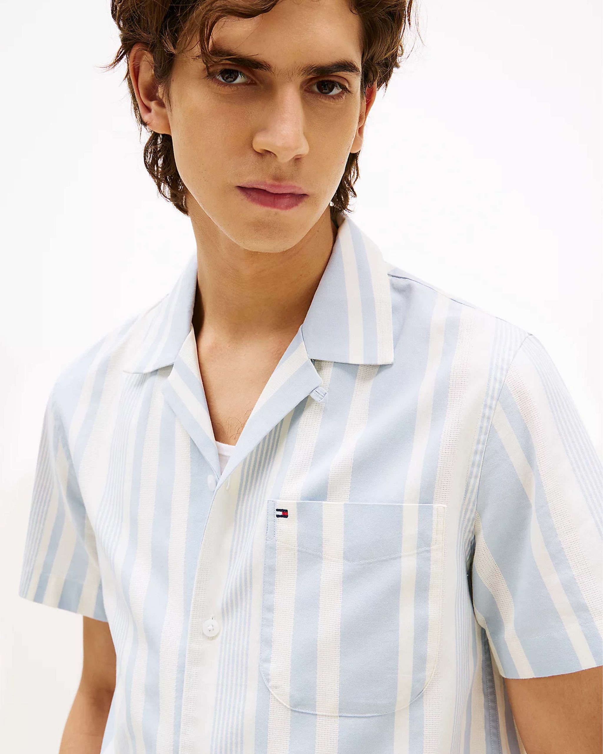 Stap stijlvol de dag in met het Striped Camp Collar T-Shirt van Tommy Hilfiger. Dit iconische heren T-shirt combineert comfort met een moeiteloze uitstraling dankzij de zachte katoenen stof. De camp collar voegt een modern tintje toe, terwijl de blauwe strepen een tijdloze charme geven. Perfect te combineren met jeans of shorts voor een casual look, ideaal voor elke gelegenheid.