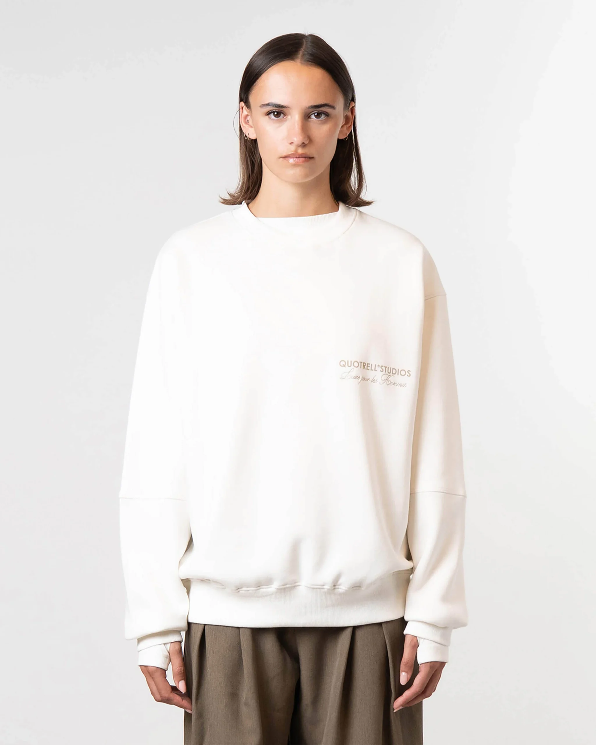 Maak kennis met de perfecte streetwear aanvulling: de Studios Sweater van Quotrell. Deze sweater in een stijlvolle ecru kleur is een must-have voor de moderne man die houdt van een coole uitstraling. Gemaakt van 100% organisch katoen, biedt het niet alleen draagcomfort maar ook een duurzame keuze.