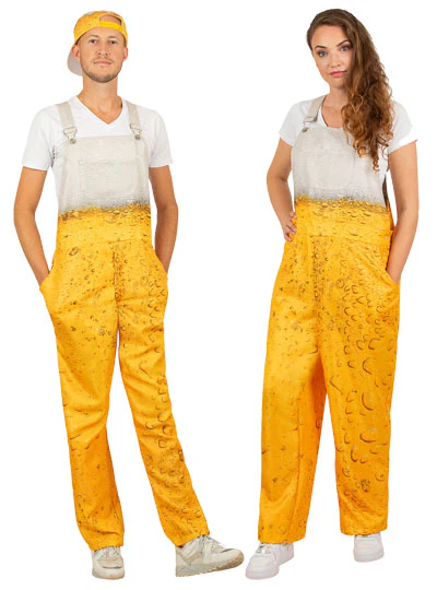 Op zoek naar de perfecte outfit voor carnaval? Zoek niet verder! Deze tuinbroek met bierprint is ideaal voor feestelijke gelegenheden. De tuinbroek is gemaakt van hoogwaardig 100% polyester en heeft zakken in de zijnaad, evenals een gulp met ritssluiting.
