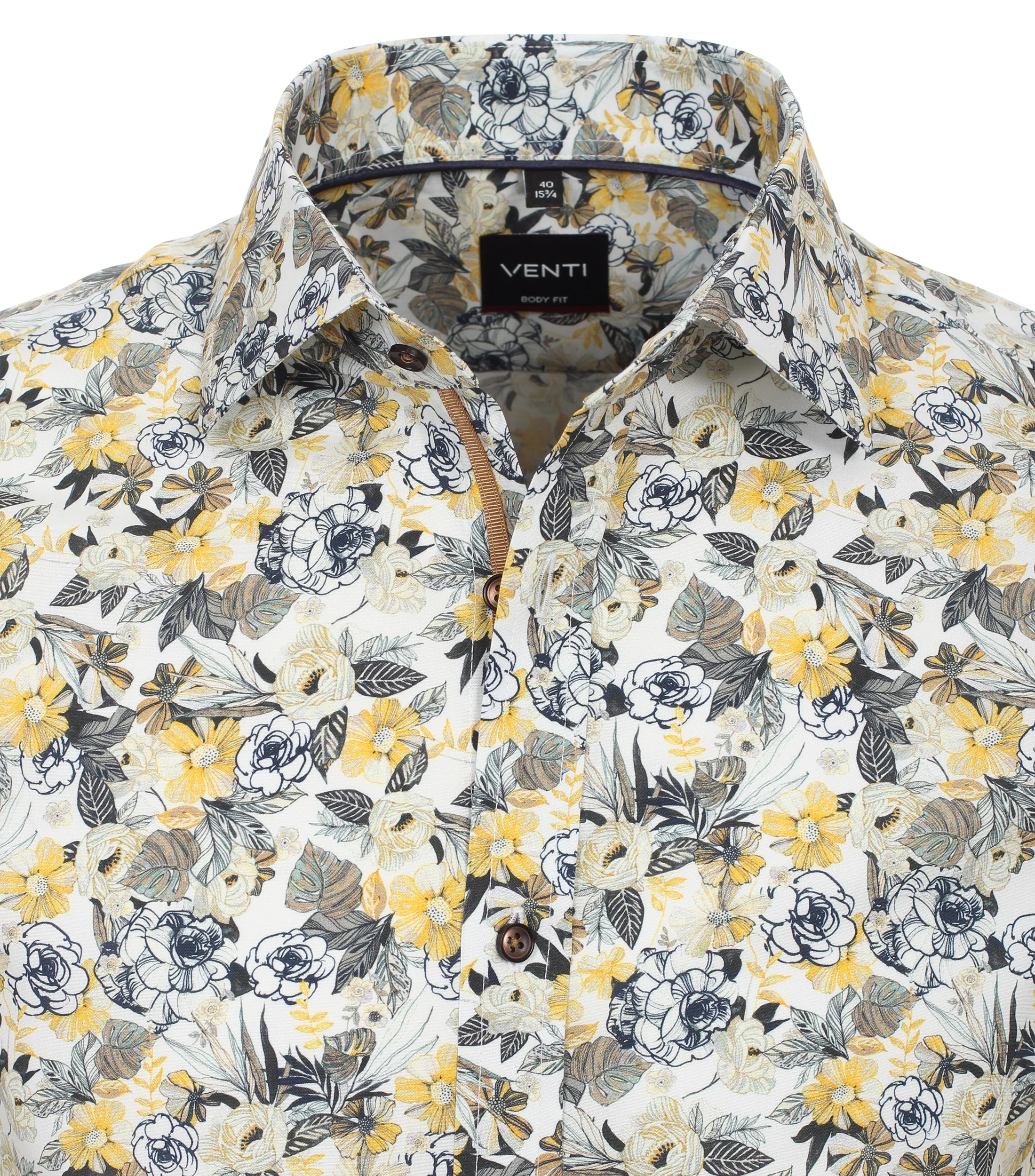 Venti Heren overhemd met bloemen print getailleerd Geel