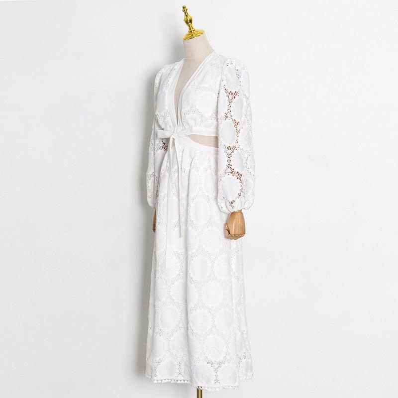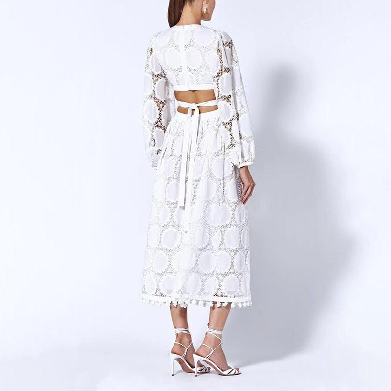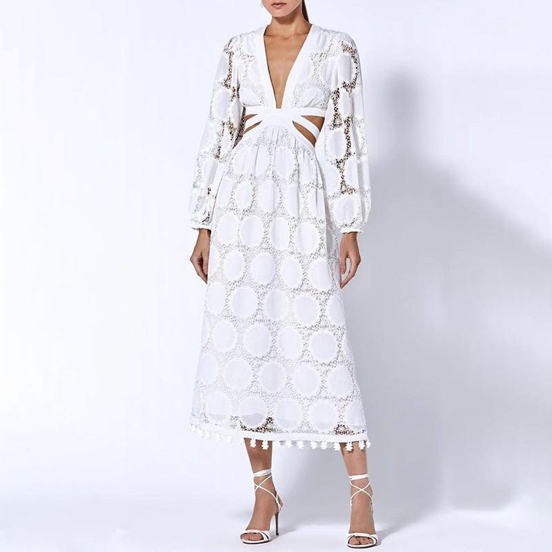 Witte Kanten Ibiza Jurk met Lange Mouwen