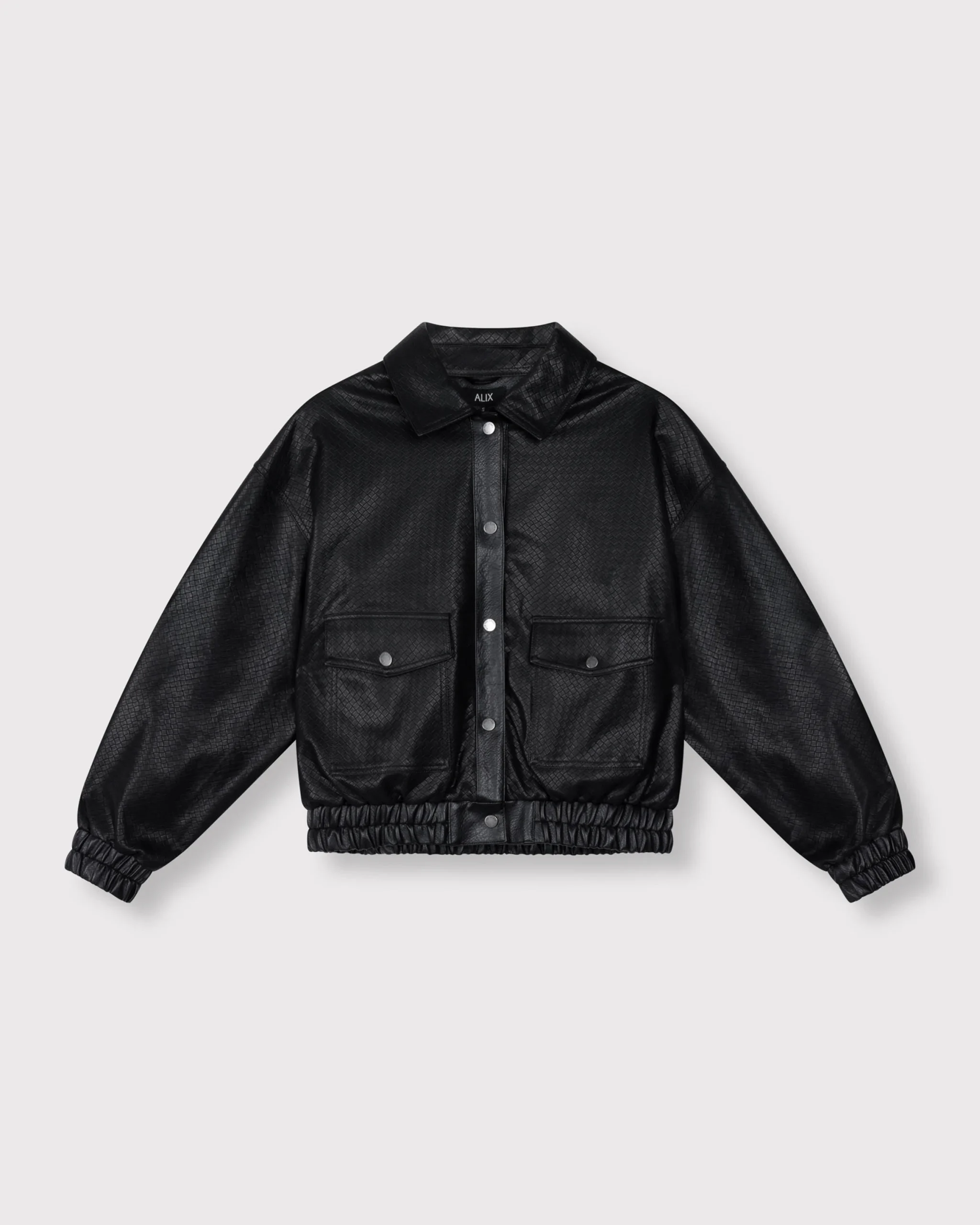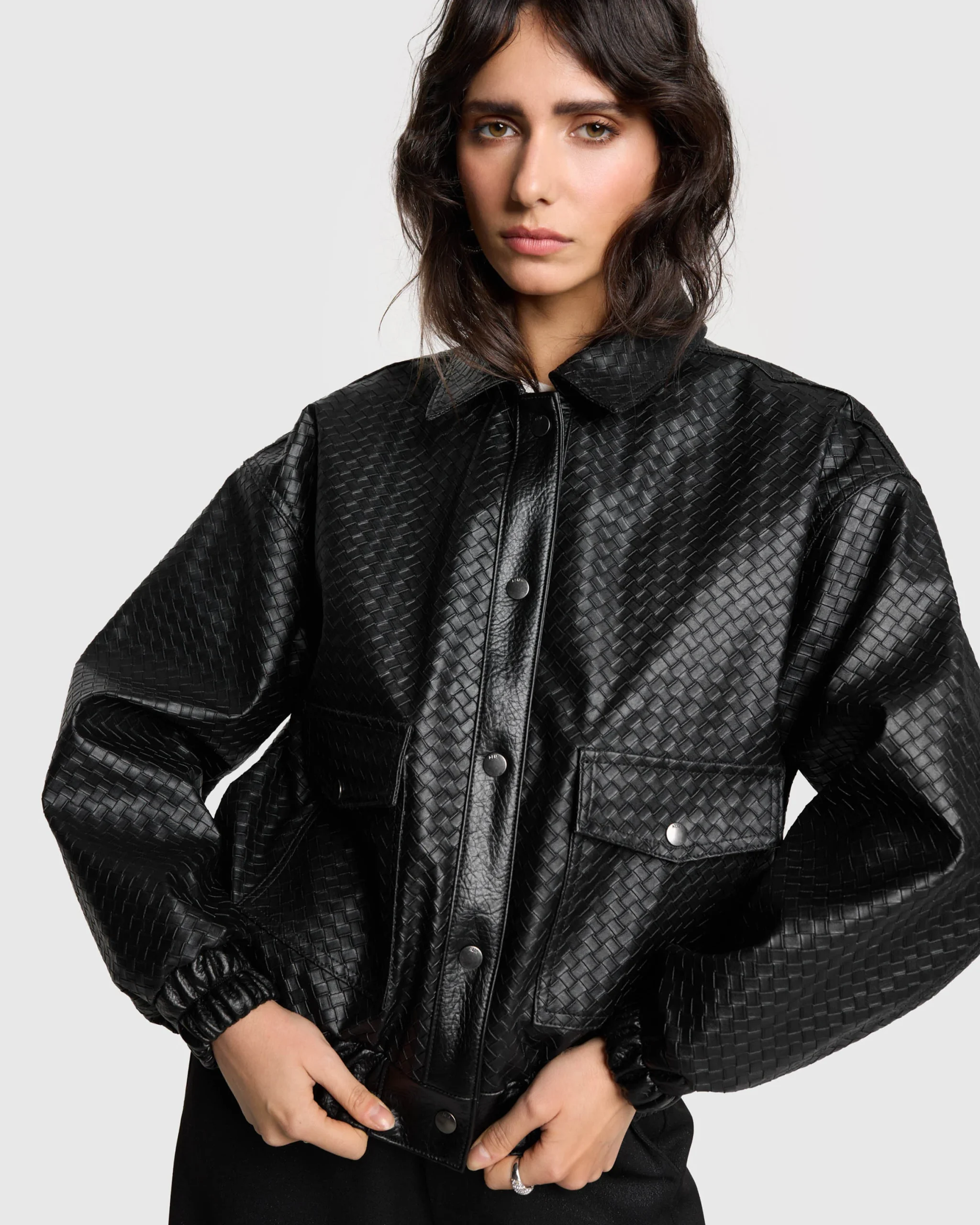 De Woven Braided Faux Leren Jas, Black is de ultieme statement piece in je garderobe. Deze unieke jas combineert de luxe uitstraling van leder met moderne, rebelse vibes, passend bij de stoere identiteit van Alix the Label.