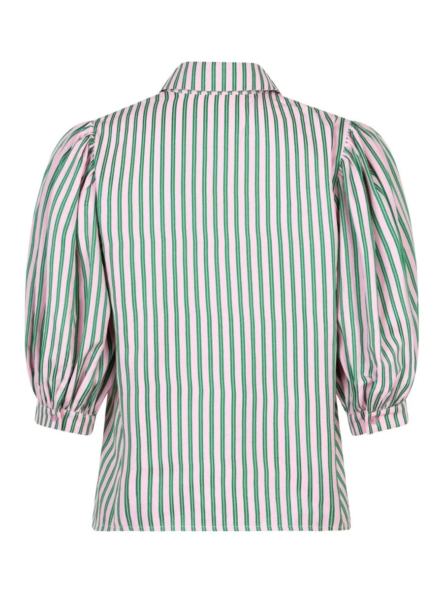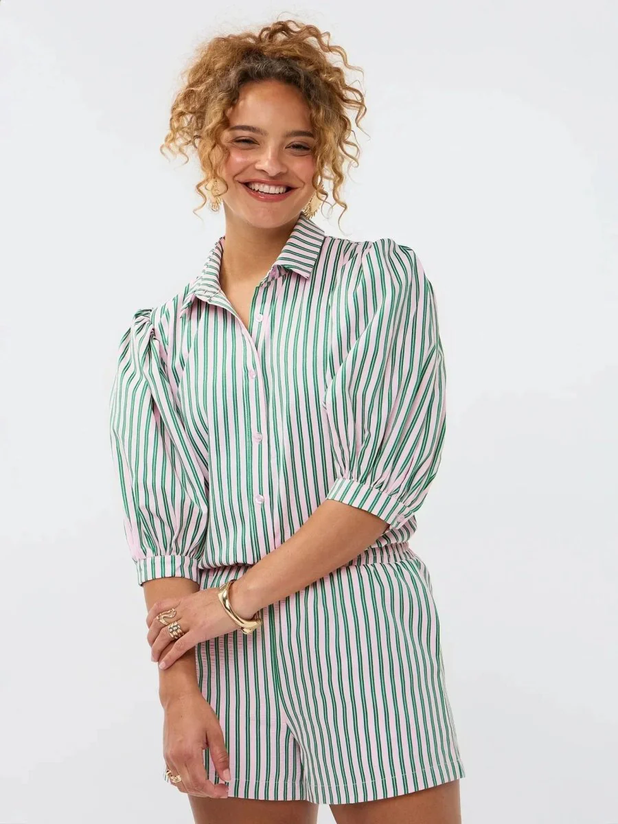 Fris, vrolijk en klaar voor de zomer: de Ydence Annie blouse is een echte eyecatcher in je zomergarderobe! Deze luchtige blouse met roze-groene strepen en pofmouwen geeft je outfit gelijk een vrolijke touch. De knoopsluiting en de klassieke kraag zorgen voor een vrouwelijke tijdloze uitstraling. , terwijl de katoenen stof heerlijk licht aanvoelt.