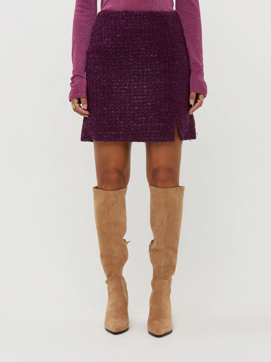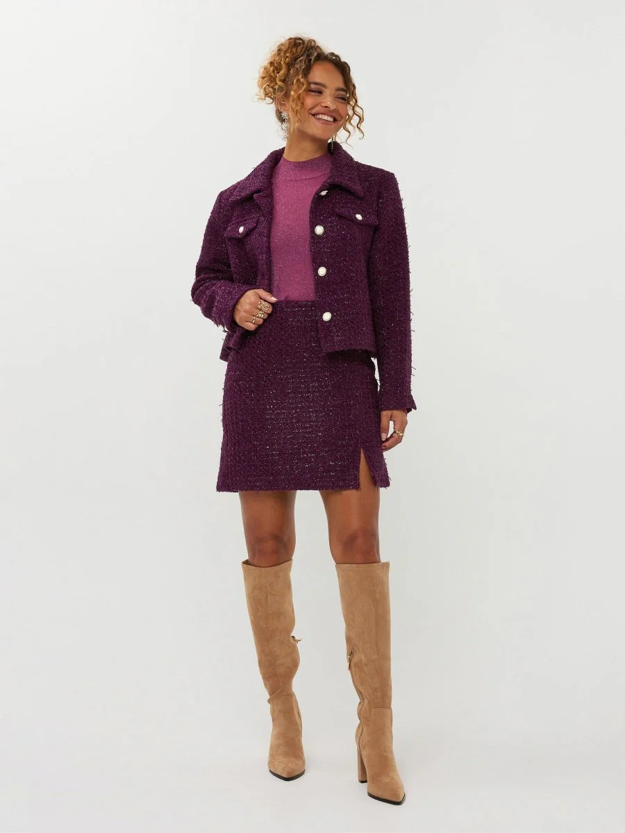 Ga voor een ultieme feestelijke co-ord set en combineer deze damesrok met het Wiske jacket. Hiernaast is de Lindsey blouse in het bordeaux rood ook een waanzinnige combinatie.