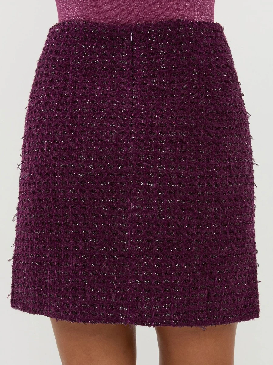 De Femke skirt van Ydence is een feestelijk rokje met een chique uitstraling, ideaal voor feestelijke gelegenheden! De Femke rok heeft een kleine split aan de voorkant van de rok en is geweven met een subtiele lurexdraad, waardoor er een klein glimmertje zichtbaar is.