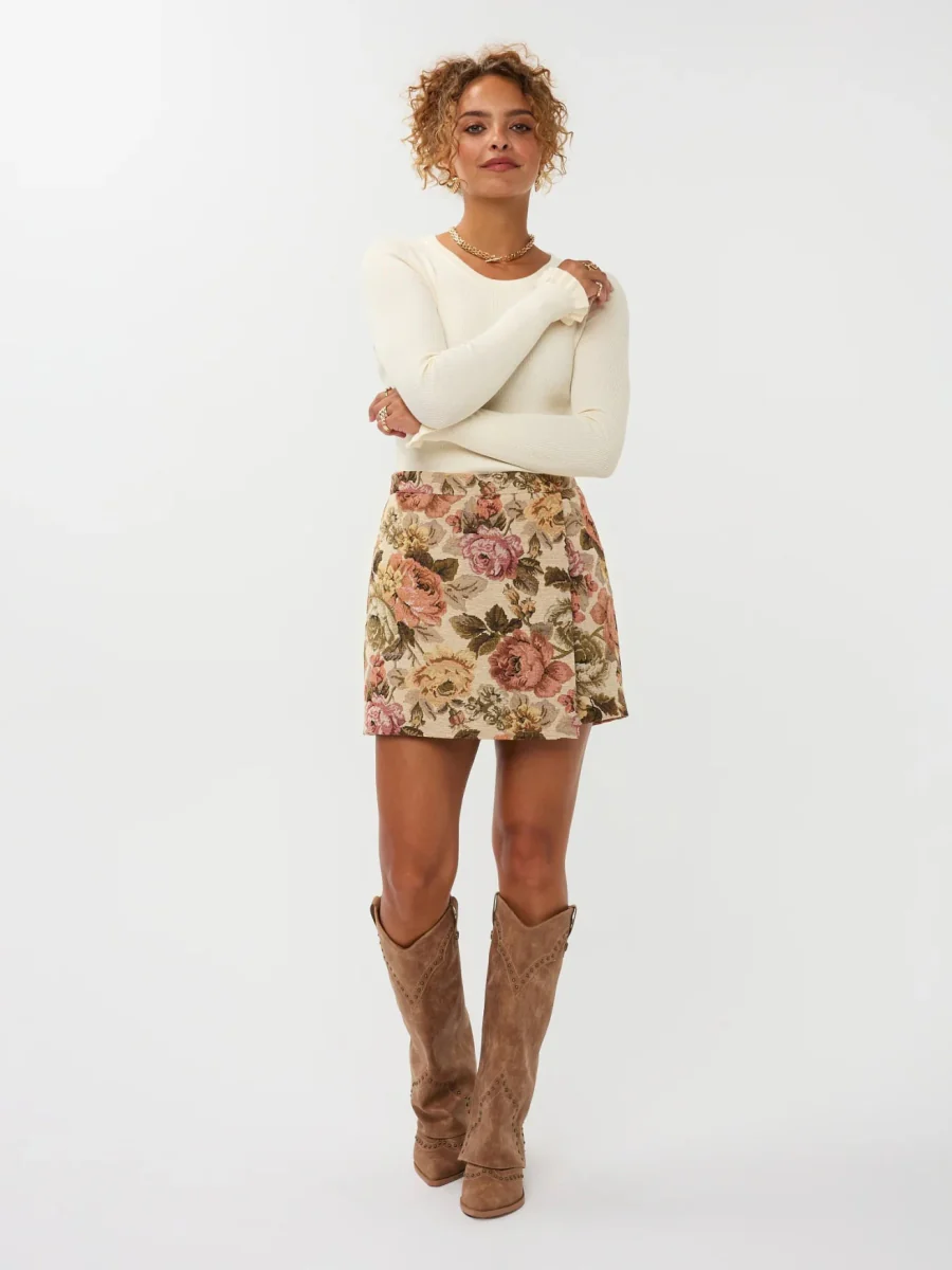 Het ziet er uit als een rok, maar er zit een broekje onder. Beter kan niet, toch? Zeker niet als de skort er zo prachtig uit ziet als de Violette skort van Ydence. De bloemenprint op de gedetaileerde stof maakt dat de skort er uit ziet als een waar kunstwerkje. Deze dames skort heeft als sluiting een rits aan de achterkant.